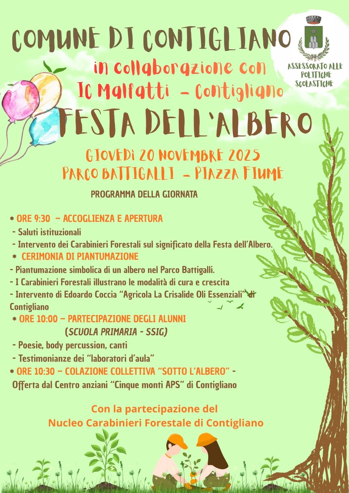 L'Assessorato alle Politiche Scolastiche e il Nucleo Carabinieri Forestale di Contigliano, in collaborazione con l'Istituto Comprensivo Malfatti, invitano la cittadinanza alla Festa dell'albero.